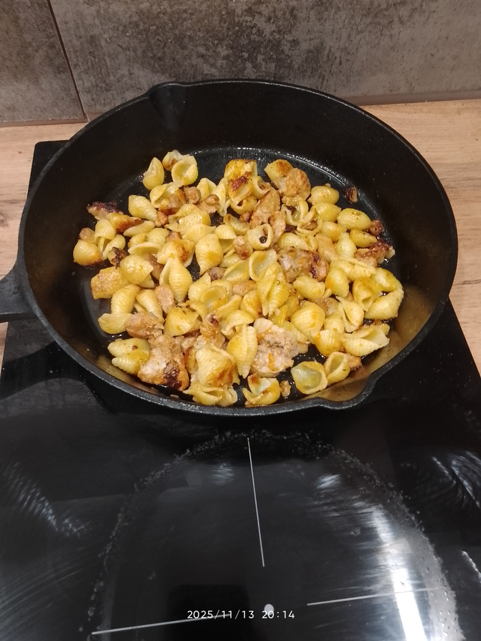 Да вроде отмыл это место. Жарю вчерашнее макарошки с мясом )) Уже вижу, что масло не стекает никуда в одну сторону!