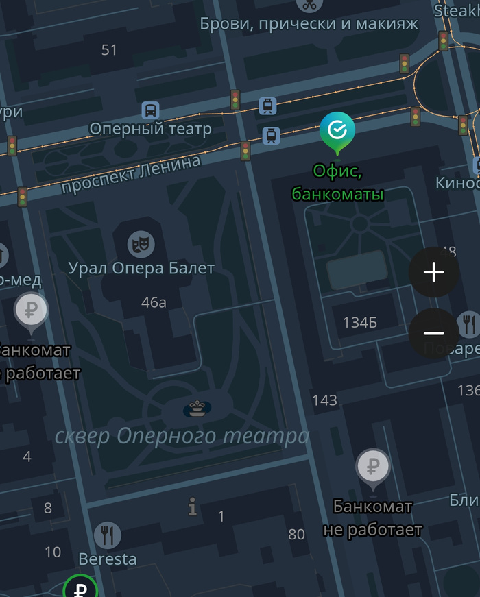 Как, например, на Луначарского между Малышева и Ленина.