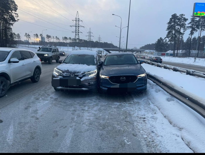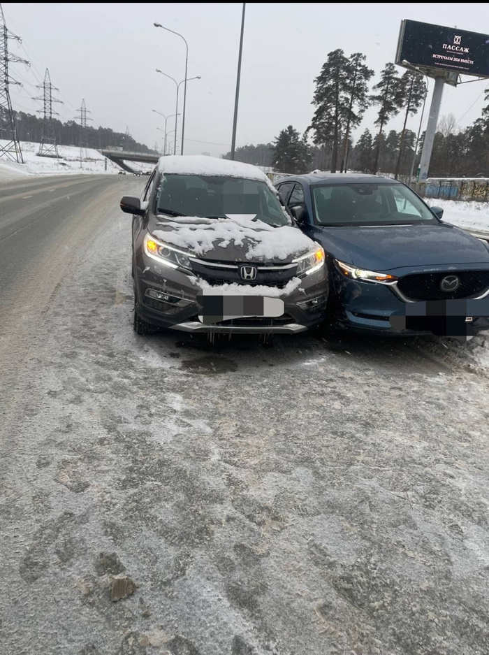 результате произошел контакт Мазда сх5 правой стороны бампера и левой передней двери водителя Хонда срв, время оттормозиться у водителя Мазда не было (доли секунды), автомобиль мазда от удара отскочил в отбойник. По факту водитель Хонды не убедился, что левая сторона свободна. Очень прошу вашей