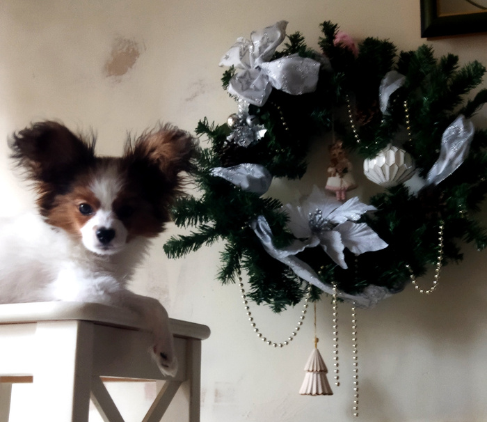 Папийон, бабочка, но он еще в стадии из гусеницы в бабочку).