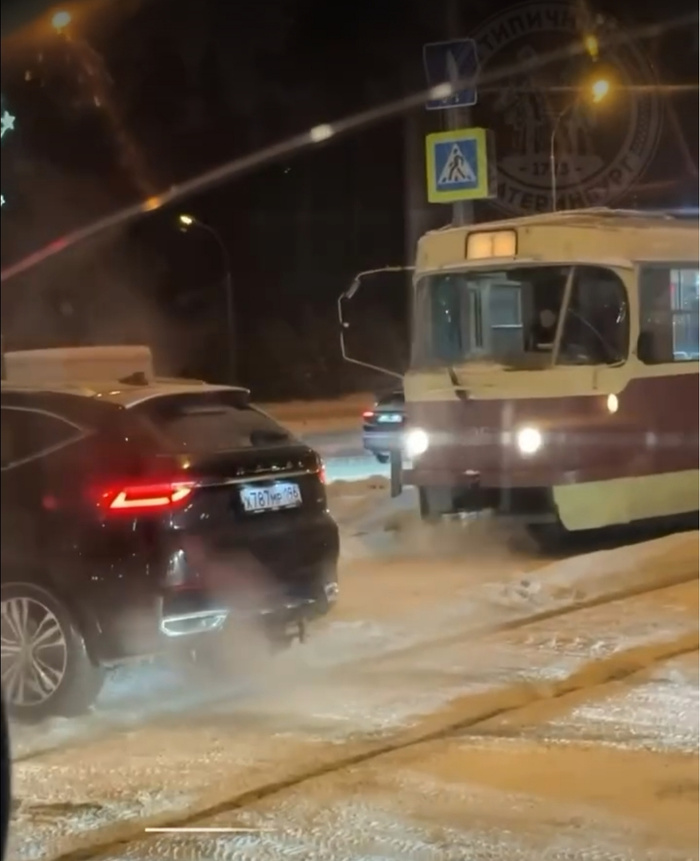 Сегодня наш один смелый водитель преподал урок выходцу из ближнего зарубежья который встал на лице в повороте и мешал трамвай проехать прямо! Начал лягать автомобиль трамваем точнее колбасой- передним сцепным устройством. Малёха помял конечно его повозку но он сам заслужил. Всегда пропускайте