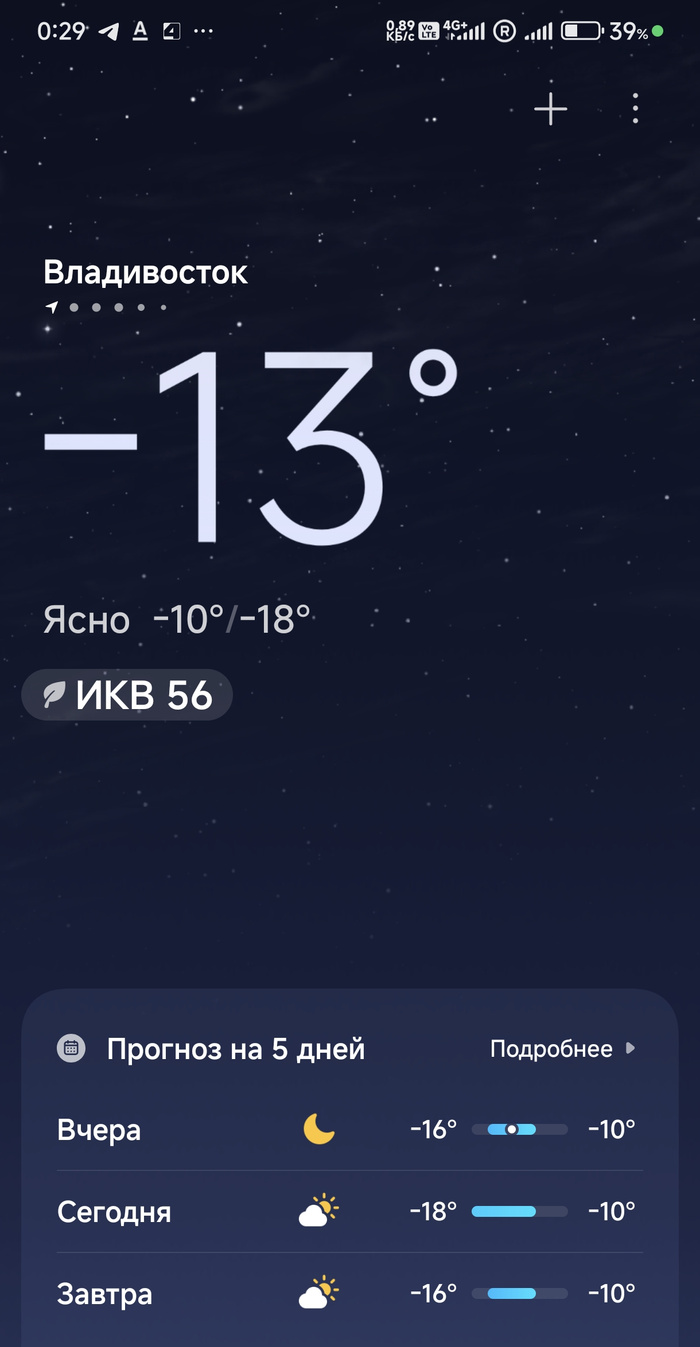 - 45 С была самая низкая температура ночью...