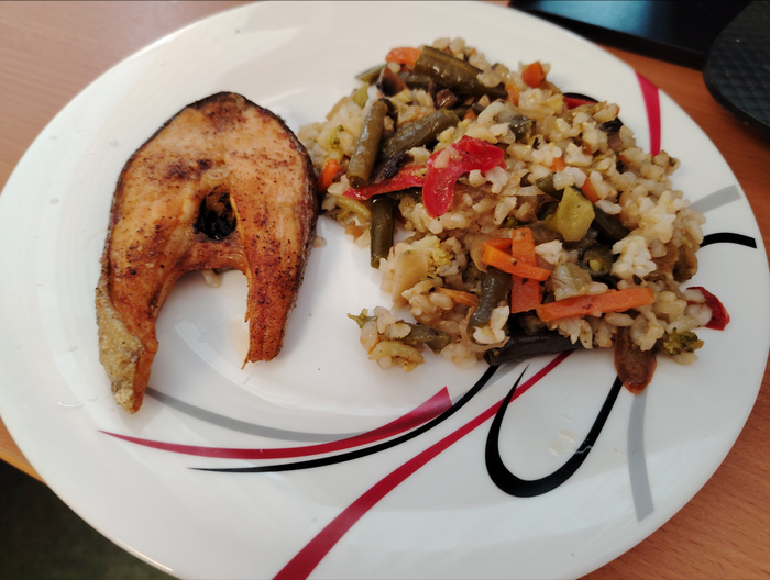 Счас форель допекается, и овощи с рисом готовы.