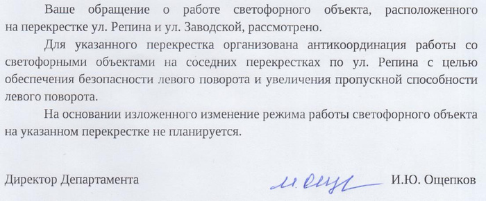 оказывается, кому-то тут важена пропускная способность левого поворота, а не самой ул. Репина! И как вообще такая "антикоординация" способна левый поворот улучшить? может объяснить кто-то?
