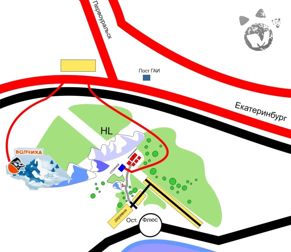 кстати если присмотреться то на дереве, возле поворота, висит табличка "флюс", видать давно вешали, очень высоко висит.
