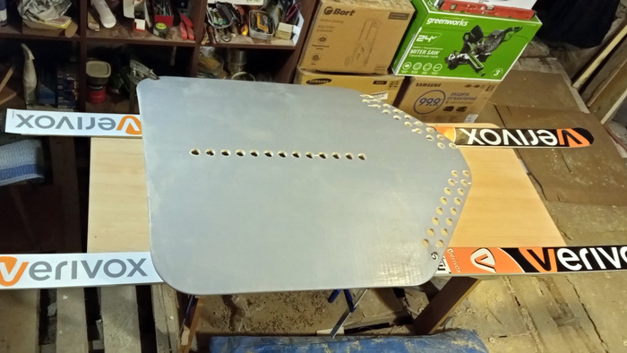 Кронштейны изготавливают из железа или титана. Чертежи есть в свободном доступе на форуме зимних серферов. Я не работаю с металлом, не владею сваркой, по этому заказал кронштейны коллеге. Он сделал для меня «полуфабрикат», который нужно было разметить, засверлить, зачистить и покрасить. По себестоимости, если всё делать самому, обходятся в 5 тысяч. Готовые наверное можно заказать за 8-9 тысяч.