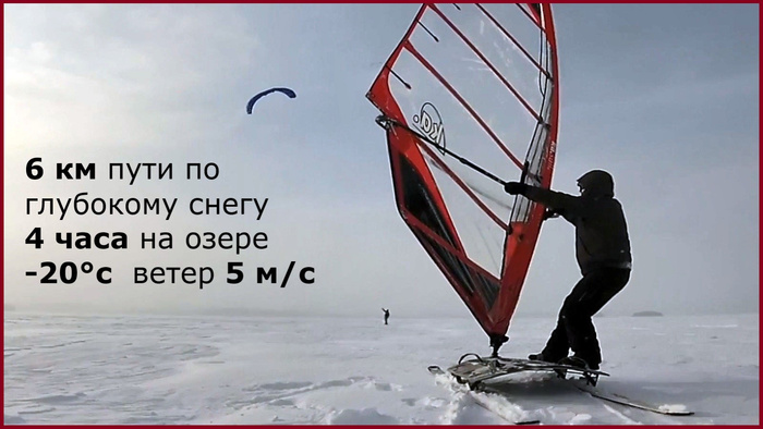 Зимний виндсерфинг на снегу переход из города по озеру 6 км