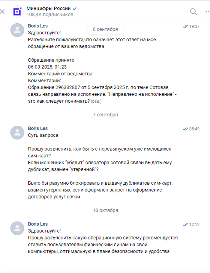 Привет, это Борис Пенсов. Мне из Минцифры наврали ложные сведения в письменной форме 1 раз (см. 14 октября 2025 23:09) и я хочу повтора.