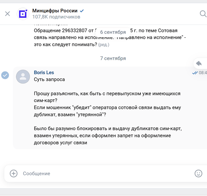 Обращение 296332807 от 5 сентября 2025 г. по теме Сотовая связь направлено на исполнение.