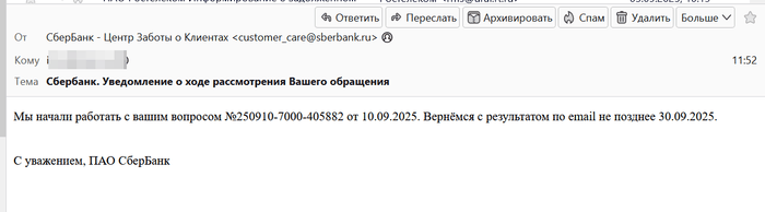 С уважением, ПАО СберБанк