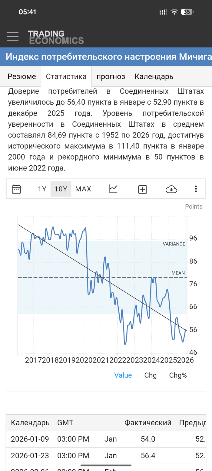 Индекс потребительского доверия Conference Board за январь, опубликованный во вторник, снизился на 9,7 пункта и составил 84,5. Это самый низкий показатель с 2014 года, превышающий минимумы прошлого года, когда Трамп ввёл жёсткие пошлины, и глубины рецессии, вызванной пандемией в 2020 году.