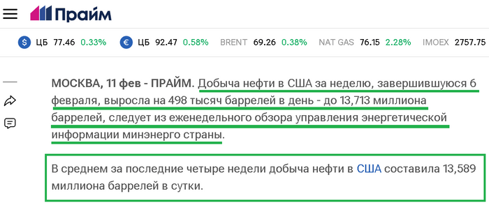 Растёт добыча нефти в US.