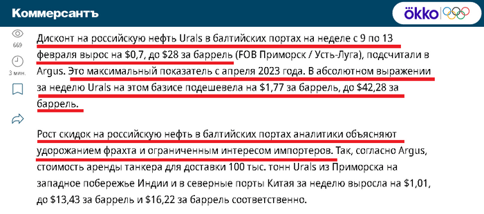 По оценкам агентства, на неделе до 15 февраля средний четырёхнедельный объем морского экспорта нефти из РФ вновь вырос (четвертый раз подряд) и достиг 3,39 млн б/д. Тем не менее показатель все еще остается на 480 тыс. б/д ниже пика, достигнутого перед католическим Рождеством.