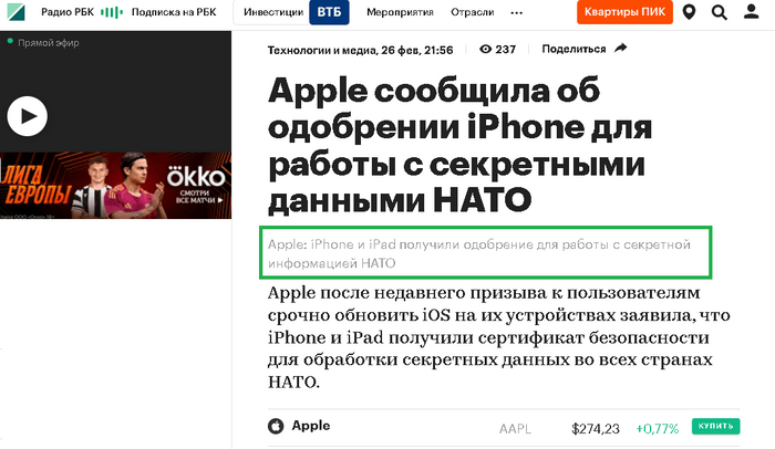 что всем в РФ нужен телефон для работы с секретными данными НАТО?
