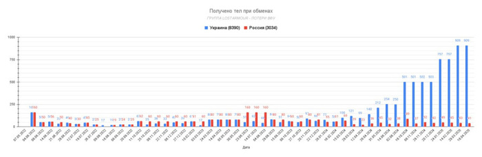 Ещё раз, количество тел собранных для обмена ничего не доказывает. Однозначно можно утверждать только то, что Украина собирает с поля боя меньше тел, чем Россия. Почему это происходит - хз. Вполне возможно, что это из за продвижения России по
