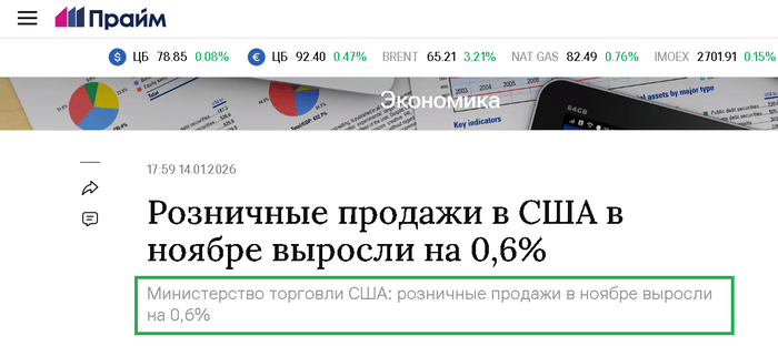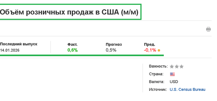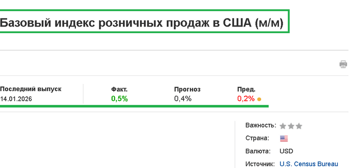 Базовый индекс розничных продаж (м/м) в ноябре 2025 существенно вырос и оказался лучше прогноза.