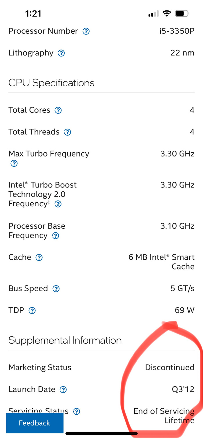 Intel выпускал более современные чипы в 2012 году, i3/i5/i7 третьего поколения, семейство ivy bridge. Это было 14 лет назад.