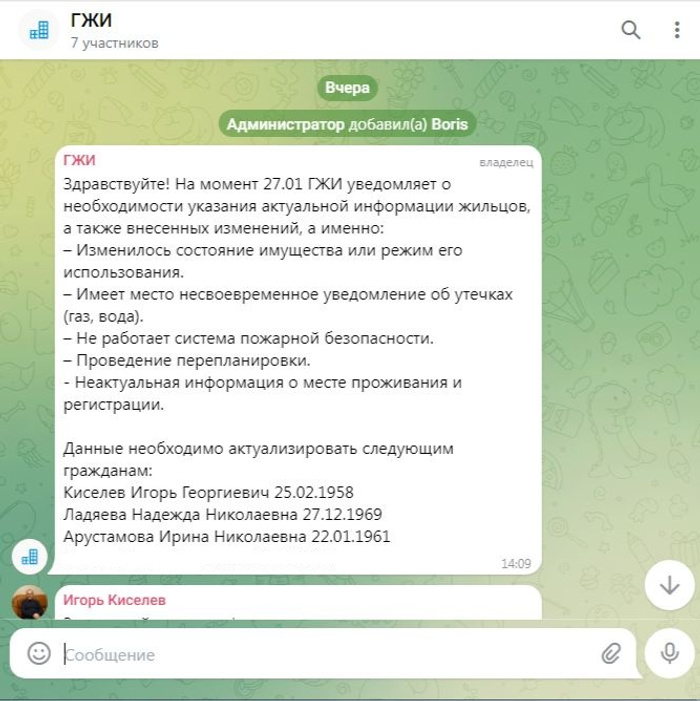 Здравствуйте! На момент 27.01 ГЖИ уведомляет о необходимости указания актуальной информации жильцов, а также внесенных изменений, а именно: