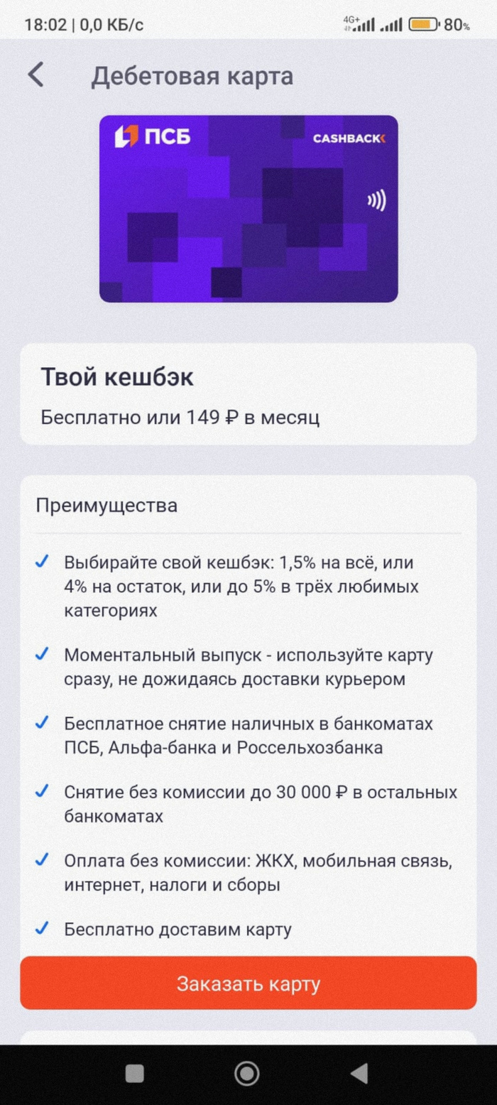 Добрый вечер уважаемой аудитории! В промсвязьбанке появился новый продукт карта с кэшбэком, я что-то не увидел её в топе.