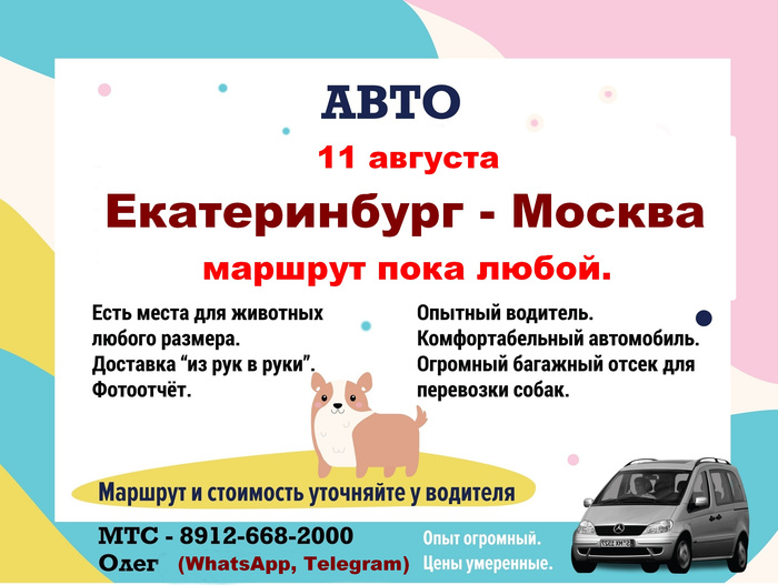 Нужна доставка шпица из Екатеринбурга в Калининград, ориентировочно 3,4 сентября, в ЛС