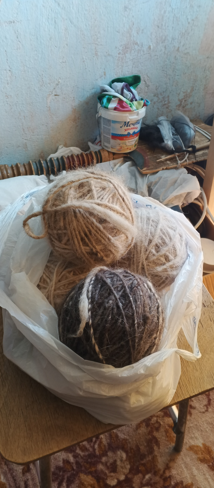 Самопряденные нитки из собачьего вычеса порода самоед. +шелк Хасегава.