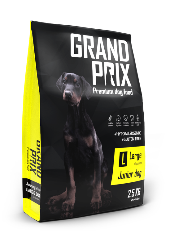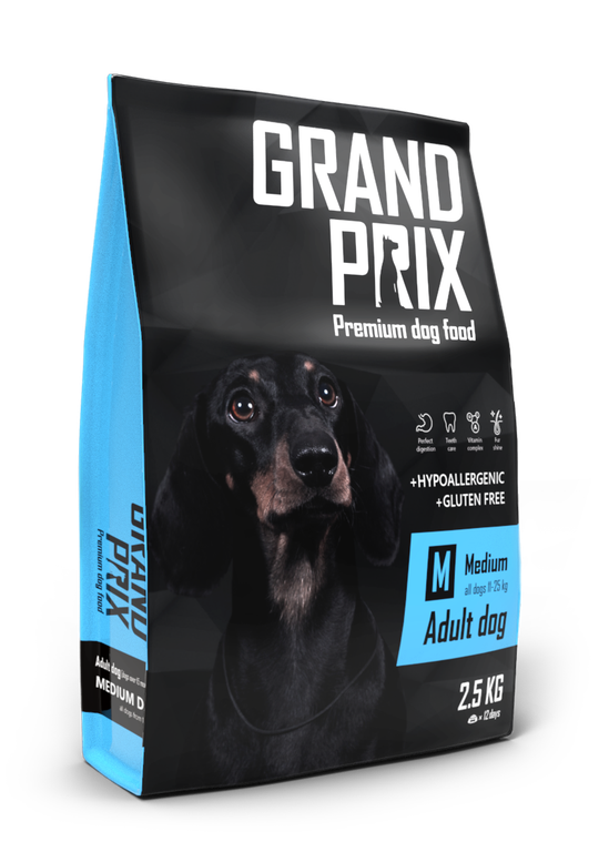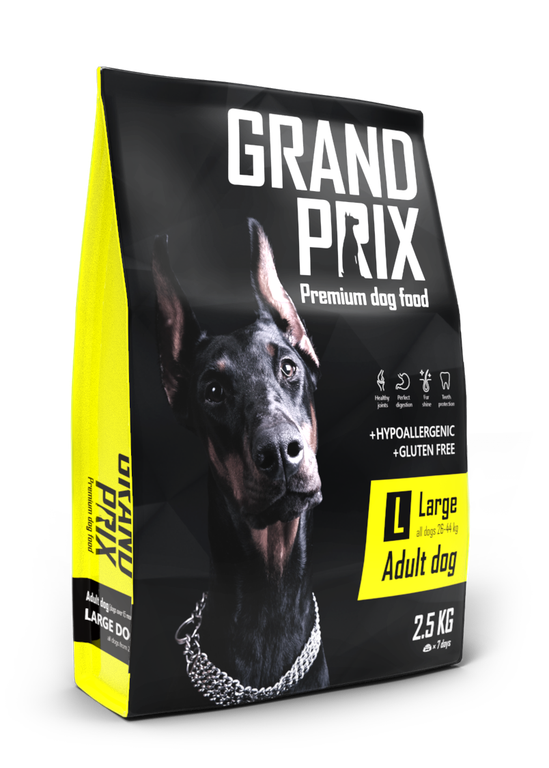 GRAND PRIX Premium dog food имеет четыре ассортиментные линейки кормов для разных классов пород. Широкий ассортимент позволяет подобрать высококачественное питание с учетом индивидуальных особенностей собаки. Составы кормов разработаны ведущими ветеринарами так, чтобы с кормом собака каждой породы получала необходимый ей набор полезных веществ и максимальную пользу на разных этапах жизненного цикла. Корма из ассортимента GRAND PRIX подойдут собакам всех пород.