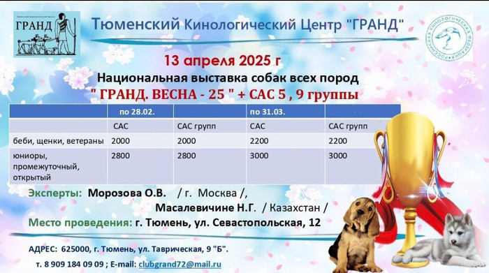 13.04.25г. Тюмень Выставка собак "Гранд. Весна-25г " ЧФ+САС групп 5,9