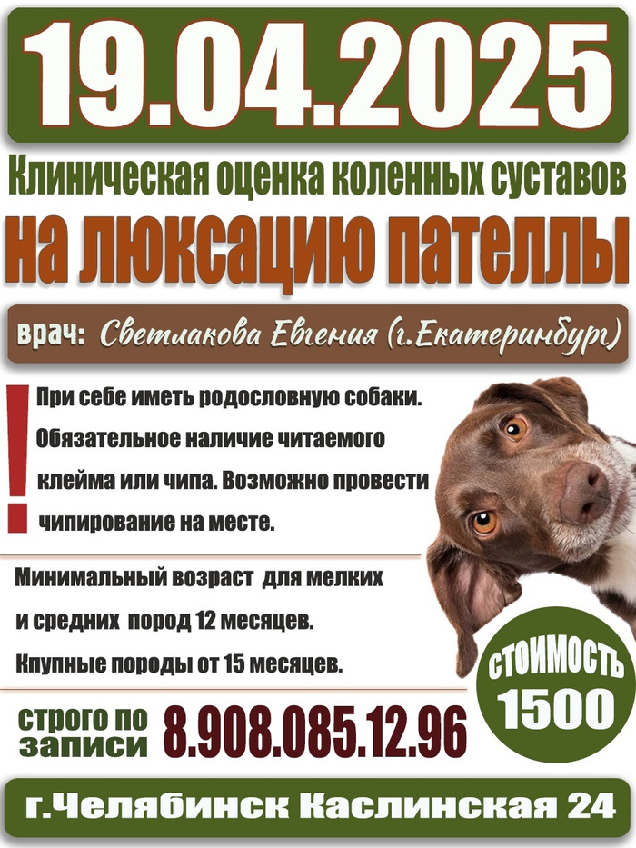 19.04.2025 г. Челябинск - Племсмотр, тестирование поведения, пателла.