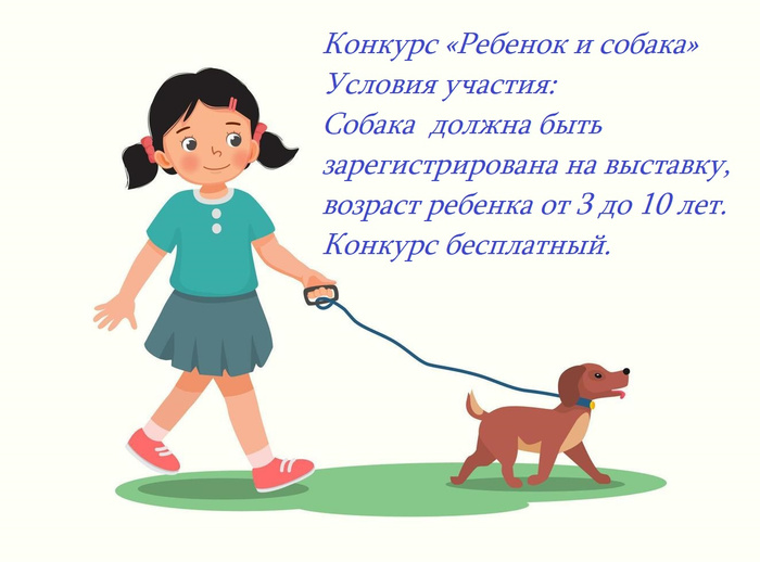 Собака должна быть зарегистрирована на выставку, возраст ребенка от 3 до 10 лет.