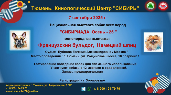 7.09.25 г.Тюмень IKU/СКОР выставка собак всех пород "Сибириада.Осень-25" Моно французский бульдог, немецкий шпиц