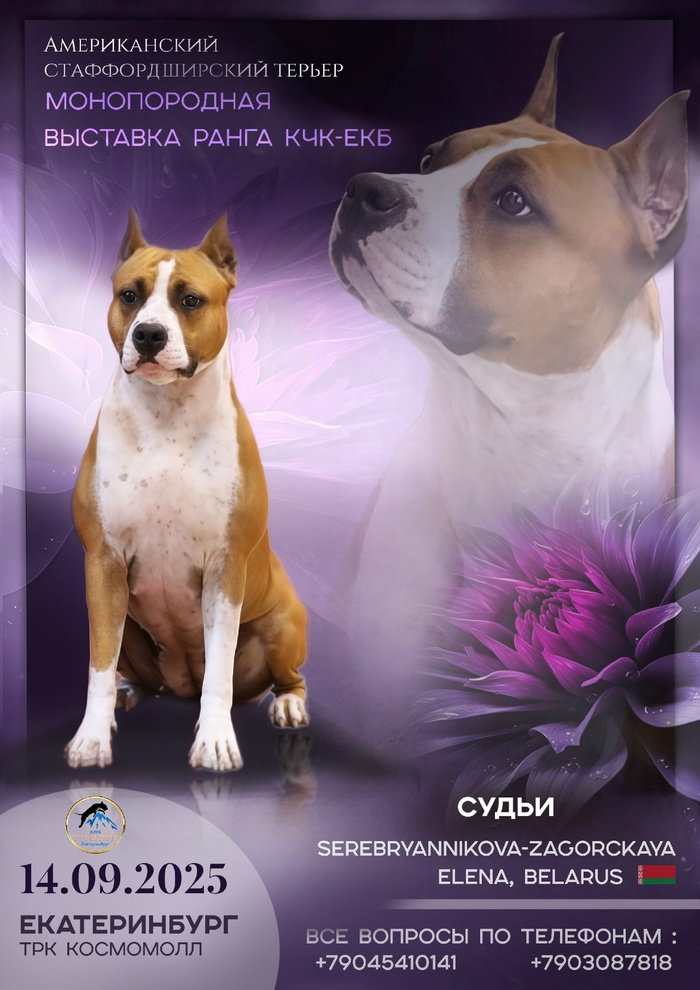 Приглашаем на монопородную выставку породы АМЕРИКАНСКИЙ СТАФФОРДШИРСКИЙ ТЕРЬЕР🥇(ранг КЧК)⚜