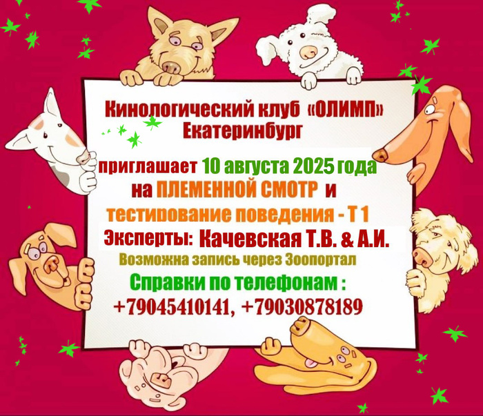 🏆🐕КЛУБ СОООЛС "ОЛИМП" Екатеринбург ПРИГЛАШАЕТ 🌱 10 августа 2025 г(воскресенье)