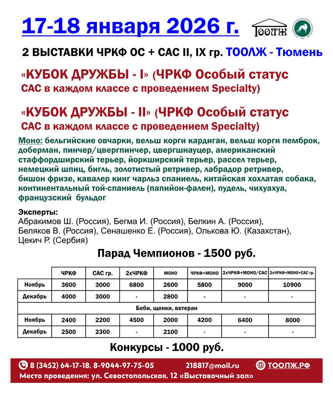 17-18.01.2026г 2*ЧРКФ ОСОБЫЙ СТАТУС+САС гр+моно, Тюмень ТООЛЖ