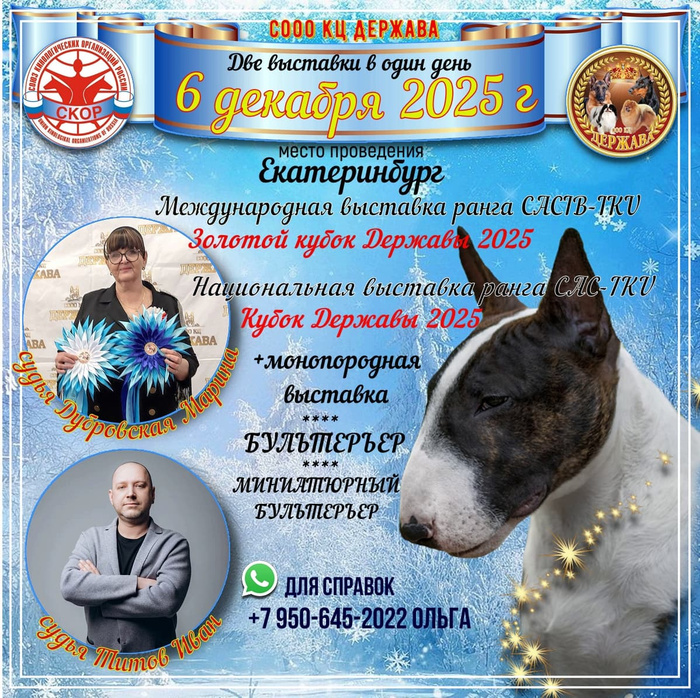 https://zooportal.pro/show/17375869/#content -Монопородная выставка собак «Бультерьер »