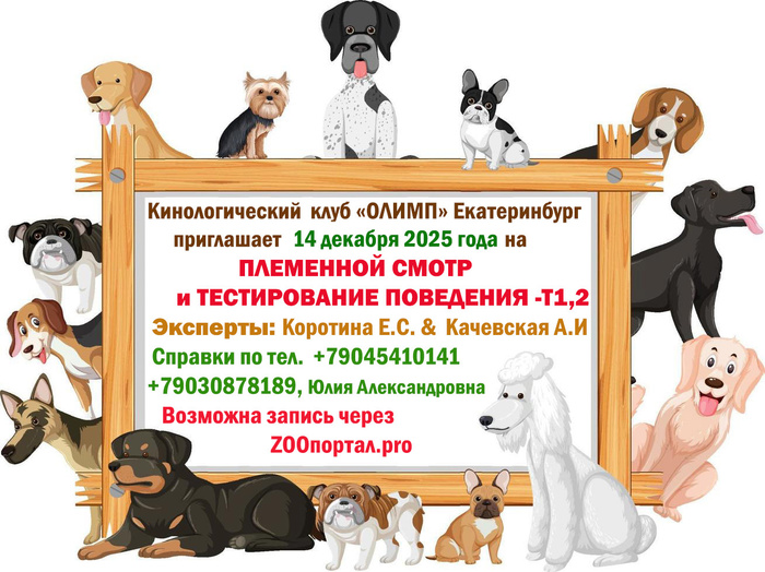 ПЛЕМЕННОЙ СМОТР и ТЕСТИРОВАНИЕ ПОВЕДЕНИЯ🎗🐕 (Т1,2) для допуска в племенное разведение