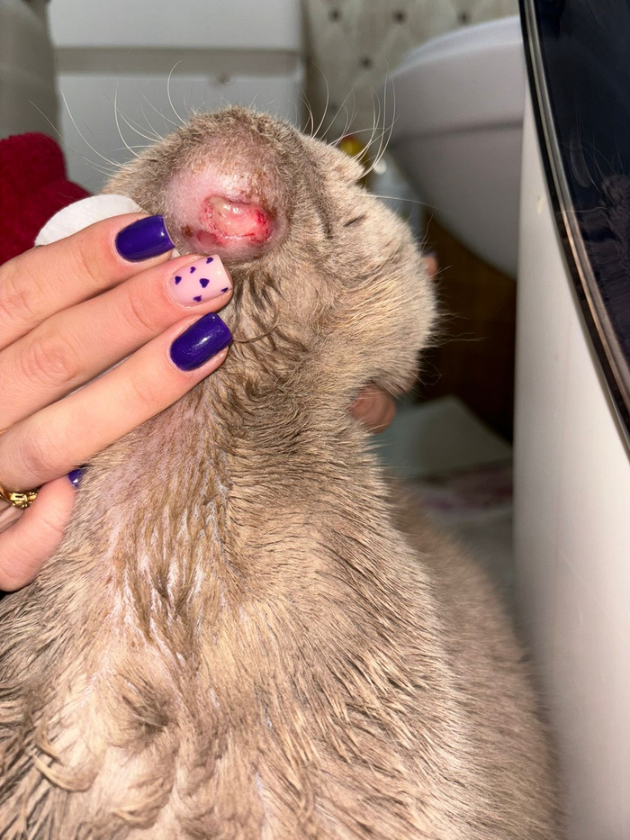Очень быстро вздулся подбородок и прорвался, оттуда сочится жидкость.
