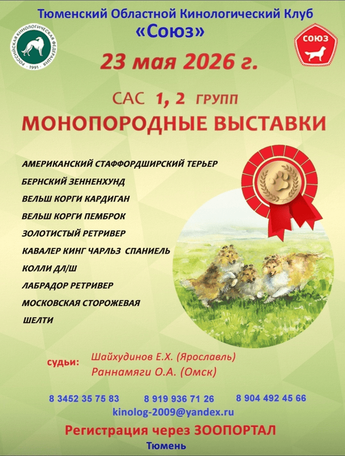 Приглашаем всех на ряд моно, а так же сас породных групп. Выставки будут проходить совместно с клубом гранд.