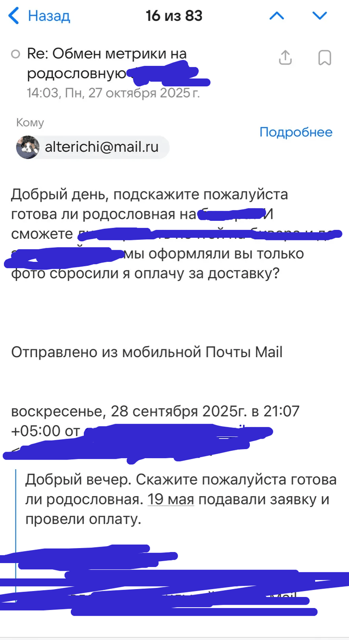 Прошу связаться данные породы, проверить сдачу пометов и связаться с новым руководством клуба. Если не оформлены. С 22-го по 25-й года.