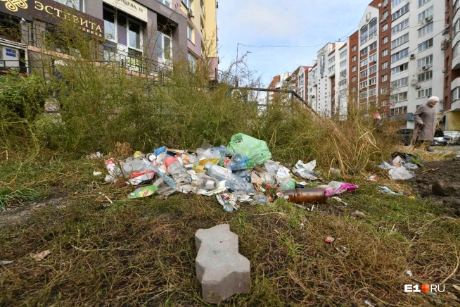 Это не куча мусора. Это местный бомж днём пластик собирает, а вечером его сдаёт в автомат в "Перекрёстке" на Радищева 33 в обмен на еду. Он свой человек, его все здесь знают. Культурный дядька. В библиотеку на Хохрякова 104 регулярно заходит. Не обижайте его. Это наш центровой бомж.