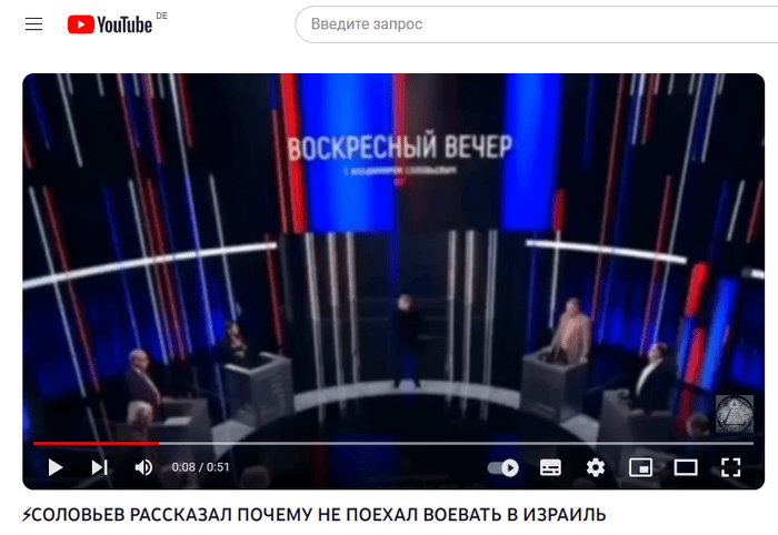 кстати, Соловьёв продуманный человек, ибо на него хохлы вовсю наезжают, а Израиль (как известно) "своих не выдаёт"