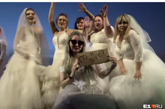 «Женись!» В Екатеринбурге красотки в свадебных платьях звали прохожих замуж: видео