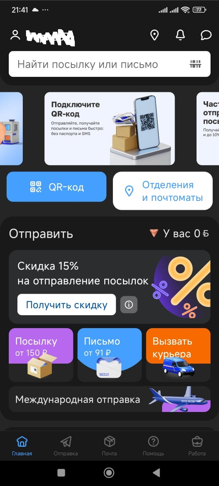 Для получения отправления оформите простую электронную подпись и подключите QR-код в нашем мобильном приложении или предъявите документ, удостоверяющий личность и заполните извещение.