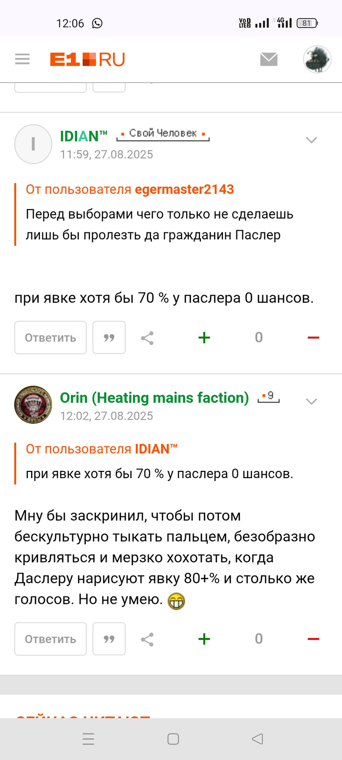 Мну бы заскринил, чтобы потом бескультурно тыкать пальцем, безобразно кривляться и мерзко хохотать, когда Даслеру нарисуют явку 80+% и столько же голосов. Но не умею.