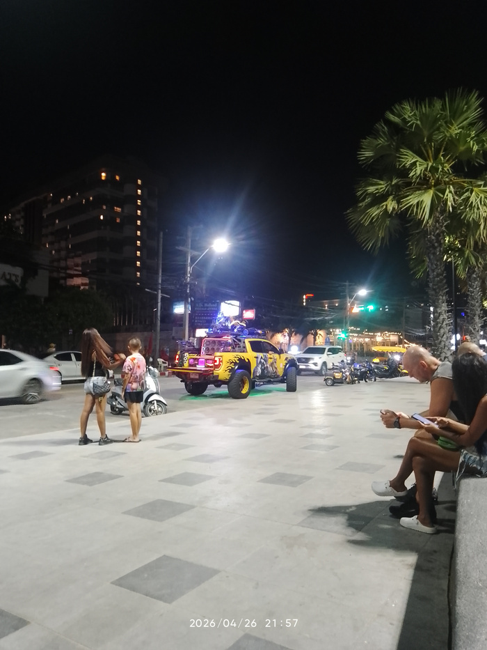 Да не удобно мне баб фоткать специально. Всякие есть. Вот ща машину ыоткпл подъехала (тут много таких меломанов ). В кадр попали две по-моему лесбиянки и справа дед с тайкой (из тут прям много). Кстати есть с колясками идут (ну не совсем деды)