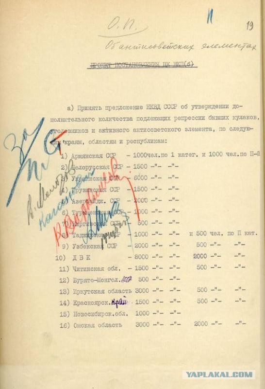 Так то то и оно, что не было какой то единой установки на репрессии. Не было этих разнарядок по регионам, сколько надо репрессировать