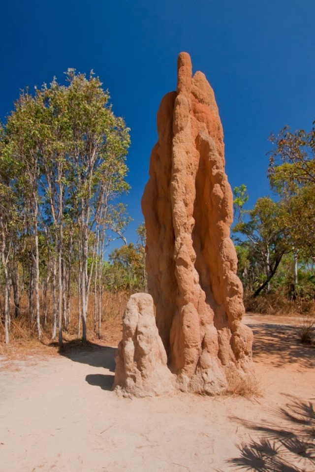 Широкая полоса пустой земли заполнена сотнями термитников,