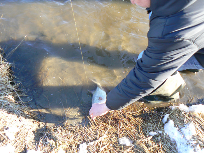 Пара рыб в прилове - чебачишка крупный на микруху, и небольшой подъязок.