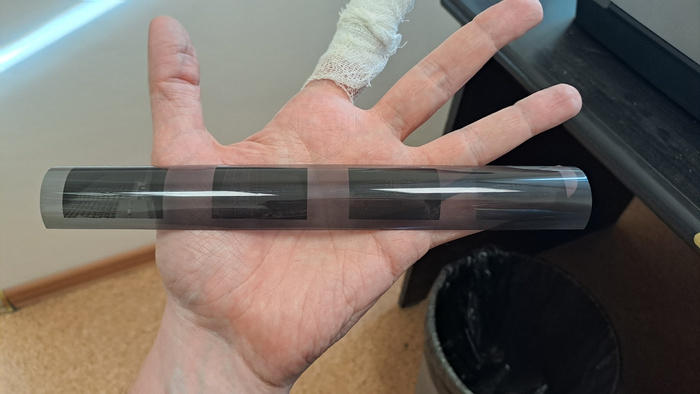 И я вот хз что это, но в сливерах от прошлой, высокоразвитой цивилизации такое попадается. Плёнка тоньше вдвое обычной 135-й, перфорации нет, межкадровое ого-го....