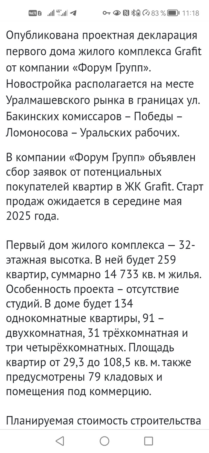 На месте уралмашевскрго рынка форум групп будет делать однушки по 29 метров .