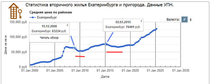 Если глянуть на вторичку по аналитике УПН. Видны кризисы 2008 и 2014 годов, после них пару лет, было снижение, а потом снова рост. Рынок же цикличен. Возможно сейчас это снижение будет больше чем прошлые года (хотя не факт, так как высокая инфляция уже долго держится и она все равно рано или поздно будет заложена в стоимость метра). Либо как вариант вместо явного падения будет снижение и продолжительный период плато, когда цены остановятся. Это кстати видно по кризису 2014, там период "стояния" цен на месте значительно длиннее чем в кризис 2008 года